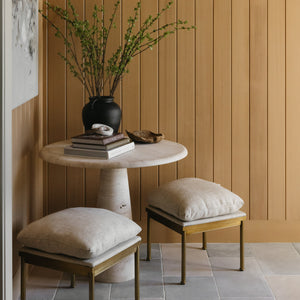 Each limestone stone is cut from much larger blocks, and then finished by either polishing the surface (honed), or with a high-impact bush hammer machine that uniformly pits the surface of the limestone to create a rough, wonderfully weathered texture.