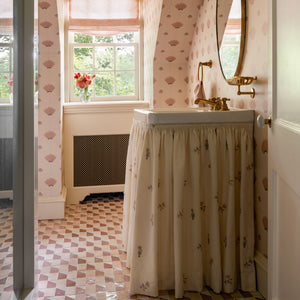 Our craftspeople in Morocco start with raw clay, mined from the local hillsides, which they soak in water and filter for impurities. At this point, the clay becomes a soft, malleable substance that can be formed into various molds. These pieces are then placed side by side and left to dry in the bright Moroccan sun. Zellige tiles are flattened and shaped by hand and left to dry further. Each piece of zellige is hand dipped in glaze and then methodically placed in an earthen kiln. Heat is distributed unevenly throughout the kiln, giving zellige tiles their stunning variation.