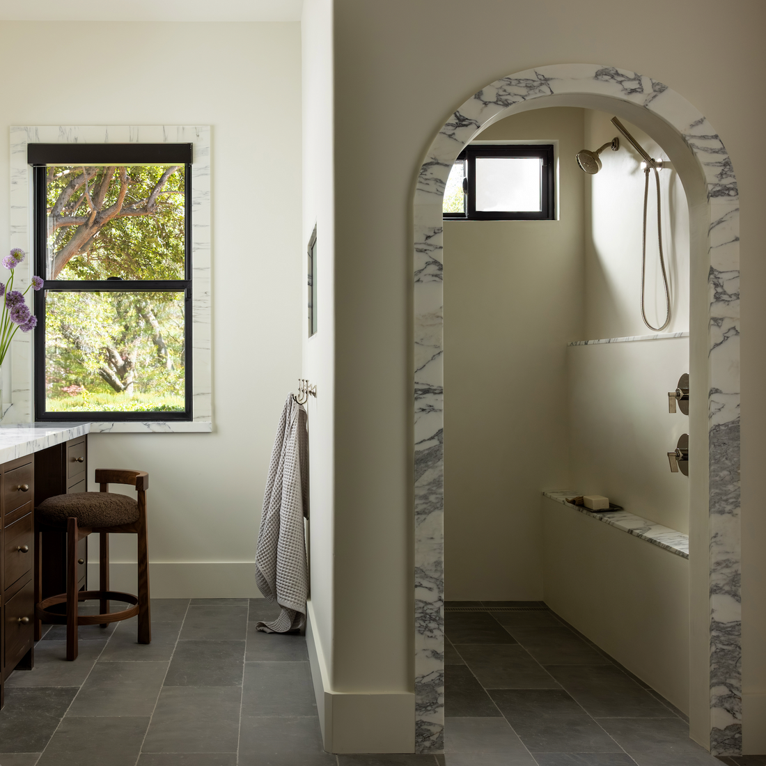 More is more when it comes to bathroom tile. Opt for floors, walls, backsplashes, the works! Your color choices can greatly influence the mood of the room, so consider the natural light and how dark or bright you may want to go with your installation. Worried about wet spaces? Wider grout lines help the slip factor on glazed tiles, so you can make anything work.