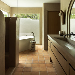 Made from locally-sourced, organic clays, our hand crafted Cotto tiles are made just outside of historic San Miguel de Allende, Mexico. Elevating the storied tradition of terra cotta, modern day artisans hand form and fire each individual tile. The tiles’ clay formulation is mixed with water and blended to the ideal consistency, then pressed in a mold to dry for 1-2 weeks until the proper moisture level is achieved for firing. At this point, wood ash is added to the surface of our ‘Fired Earth’ tiles to give them their distinctive surface coloration.
