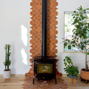 Made from locally-sourced, organic clays, our hand crafted Cotto tiles are made just outside of historic San Miguel de Allende, Mexico. Elevating the storied tradition of terra cotta, modern day artisans hand form and fire each individual tile. The tiles’ clay formulation is mixed with water and blended to the ideal consistency, then pressed in a mold to dry for 1-2 weeks until the proper moisture level is achieved for firing. At this point, wood ash is added to the surface of our ‘Fired Earth’ tiles to give them their distinctive surface coloration.
