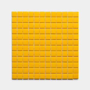 As the square tiles are cooled and removed from their molds, they are thoughtfully hand-placed on grids, in repeatable patterns and solid sheets. Whether solid, patterns, or a mix of the two, our vibrant collection and easy-to-install sheets allows for highly personalized installations.