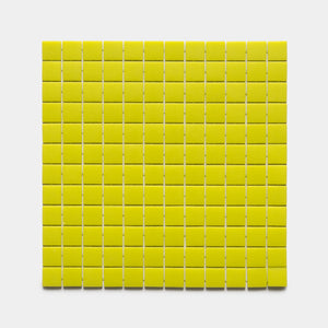 As the square tiles are cooled and removed from their molds, they are thoughtfully hand-placed on grids, in repeatable patterns and solid sheets. Whether solid, patterns, or a mix of the two, our vibrant collection and easy-to-install sheets allows for highly personalized installations.