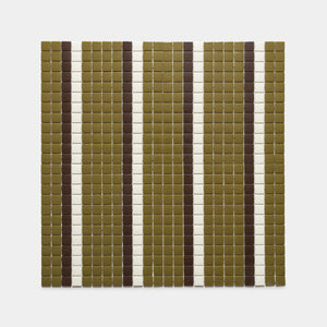 As the square tiles are cooled and removed from their molds, they are thoughtfully hand-placed on grids, in repeatable patterns and solid sheets. Whether solid, patterns, or a mix of the two, our vibrant collection and easy-to-install sheets allows for highly personalized installations.